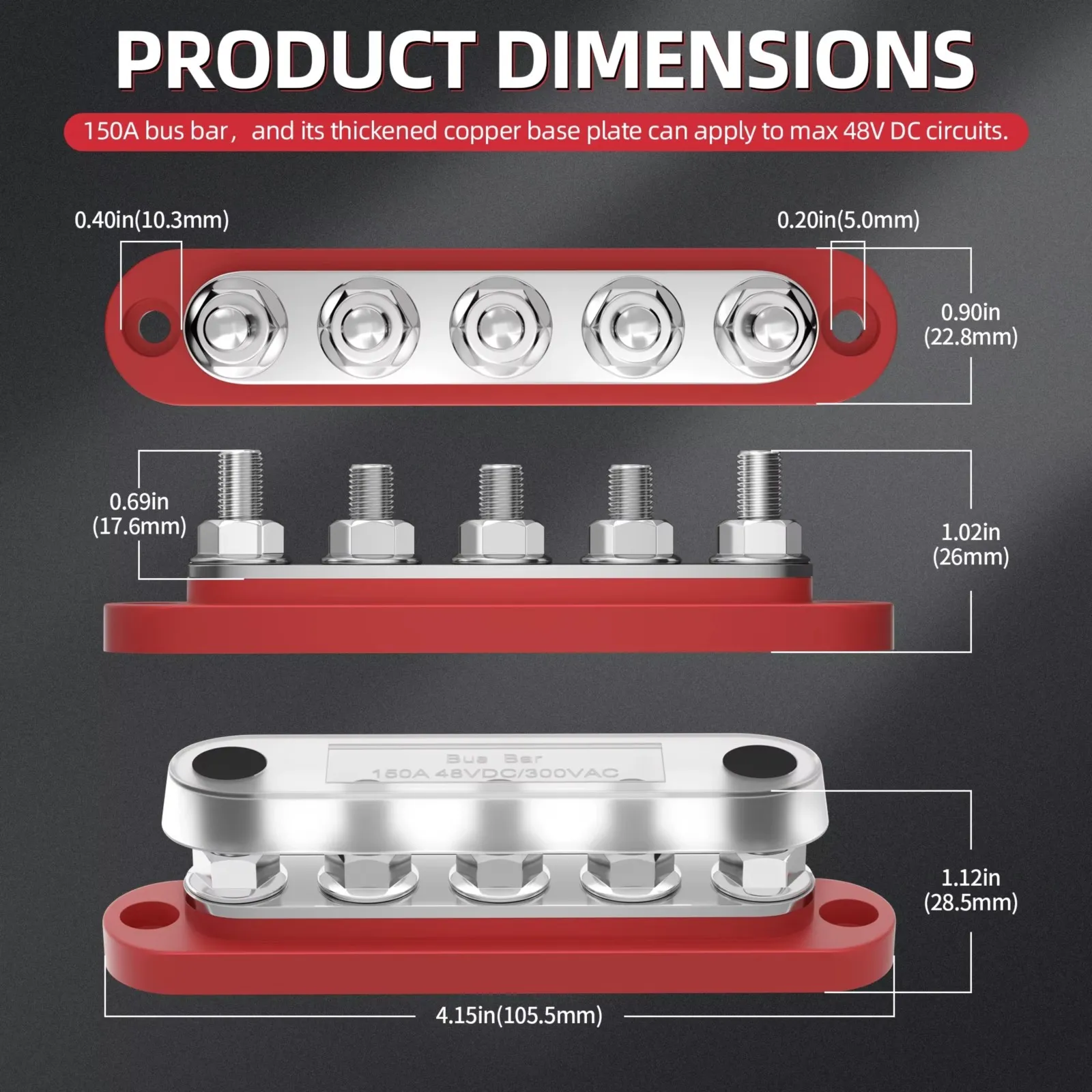 Cette barre omnibus (bus bar) 12–48 V CC est un bloc de distribution compact conçu pour câbler proprement vos installations (auto, van, 4×4, camping-car, bateau, moto, atelier).