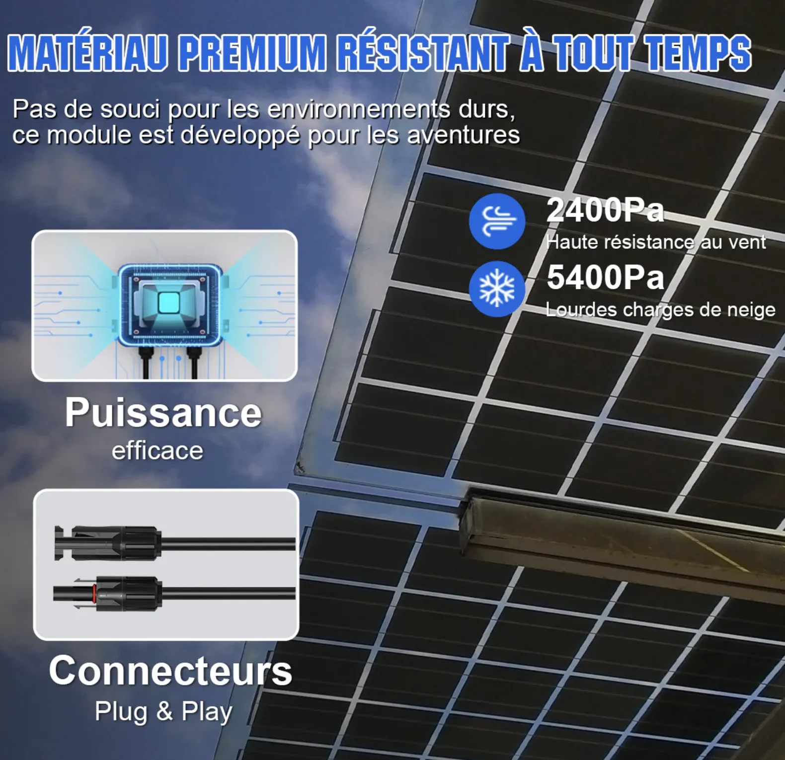 ✅ Kit évolutif : possibilité d’ajouter des panneaux ou batteries (dans les limites de l’onduleur)